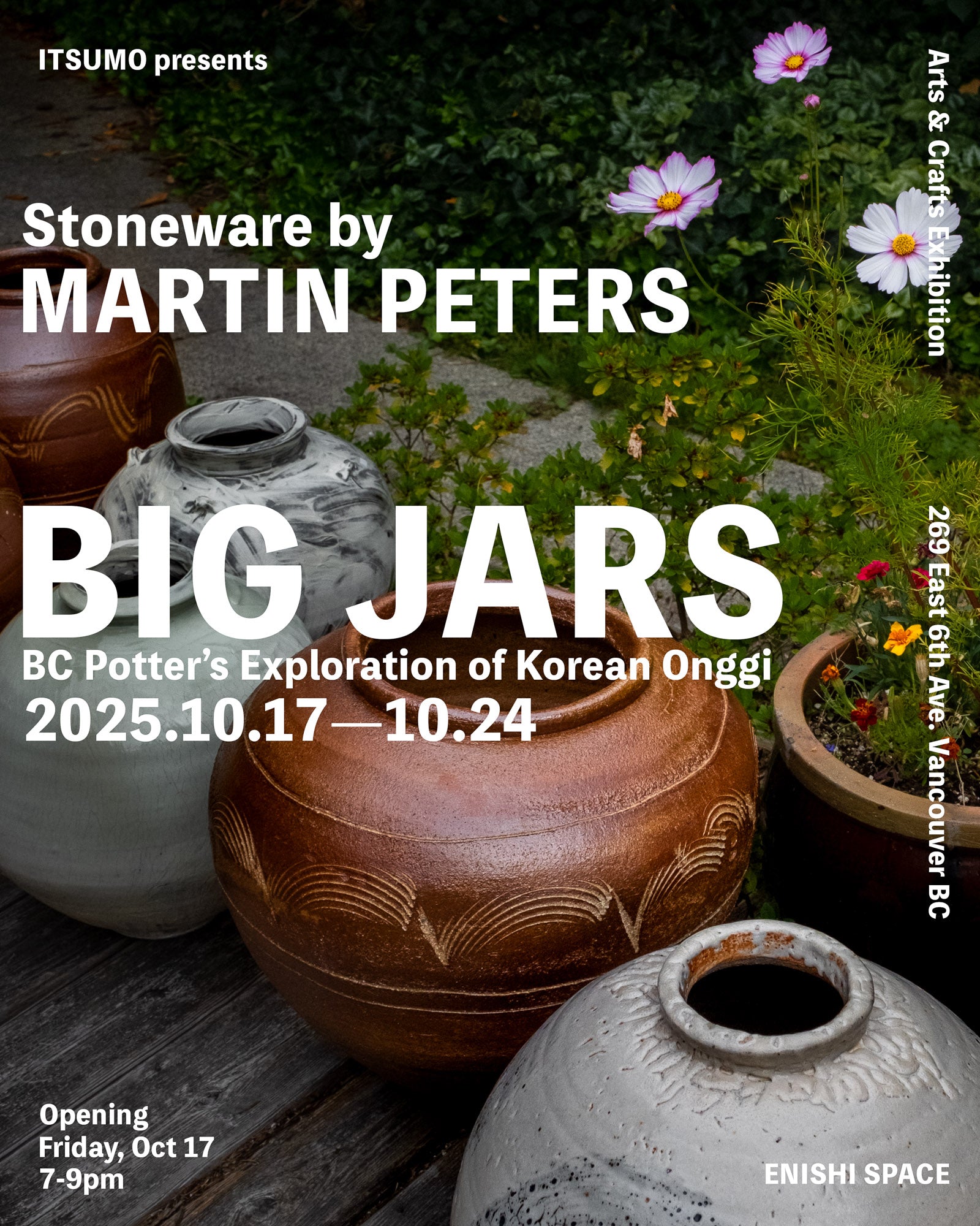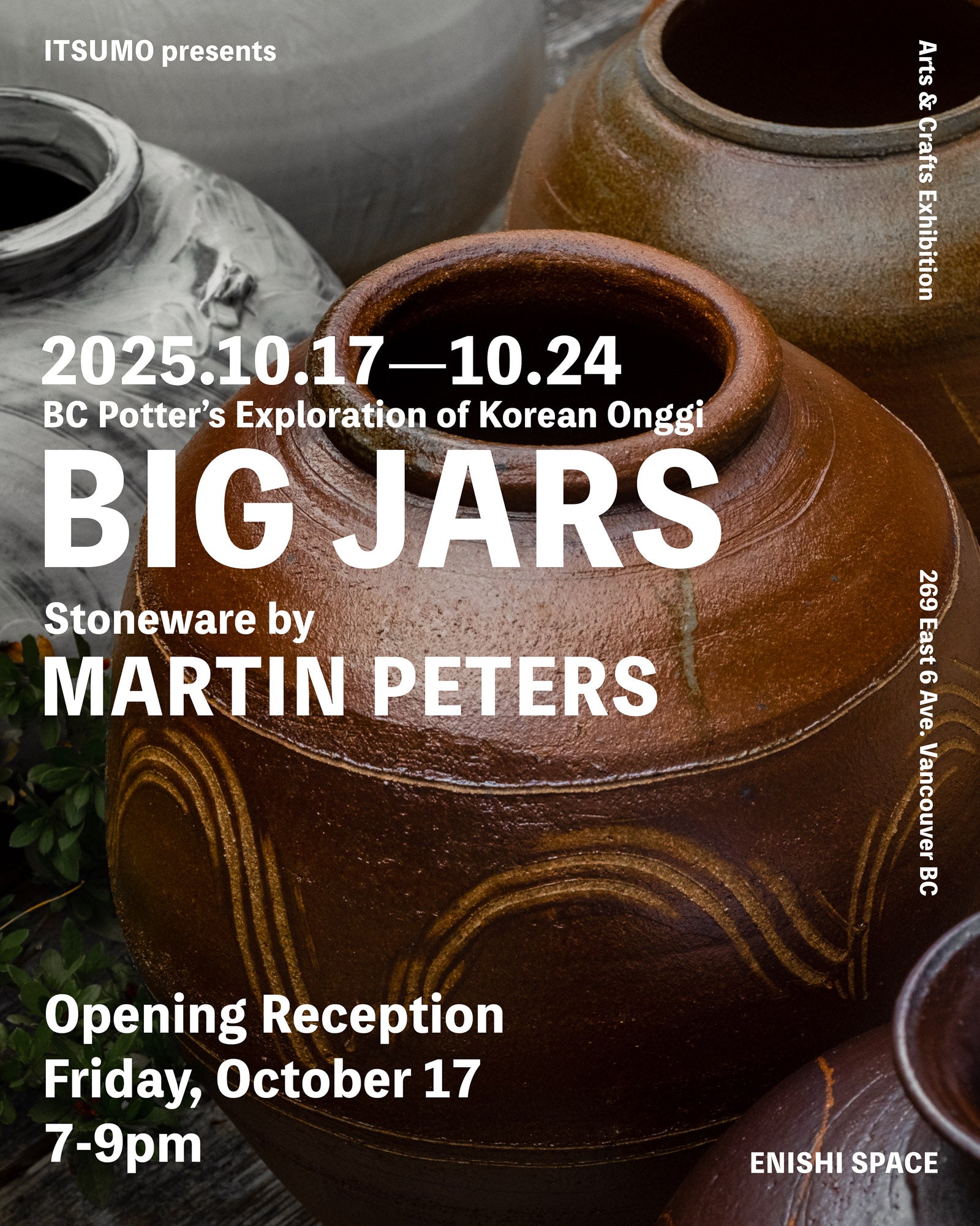 Please join us for this special opportunity to celebrate new exhibition; BIG JARS by Martin Peters at our galley of Enishi Space (269 East 6th Avenue) from October 17 through October 24 (1 week).